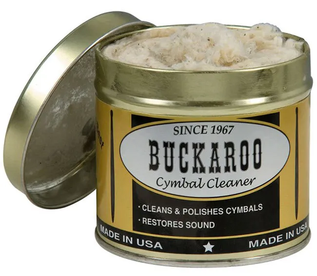 Buckaroo Cymbal Cleaner is a specially formulated and treated cloth/wadding type material that works especially well on very dirty cymbals. Easy to use. Break some off some of the swab, wipe it on, wipe it off. A little goes a long way. Restores cymbals to a rich, gold luster. For decades now, Buckaroo Cymbal Cleaner has been the best way to keep cymbals looking and sounding like new. Professionals know and trust the Buckaroo name.