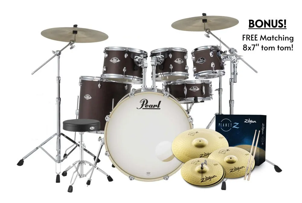 Pearl Export EXX 20″ Fusion Drum Kit with Hardware – Brushed Bronze (Bonus 8" Tom + Zildjian Planet Z Cymbal Pack)