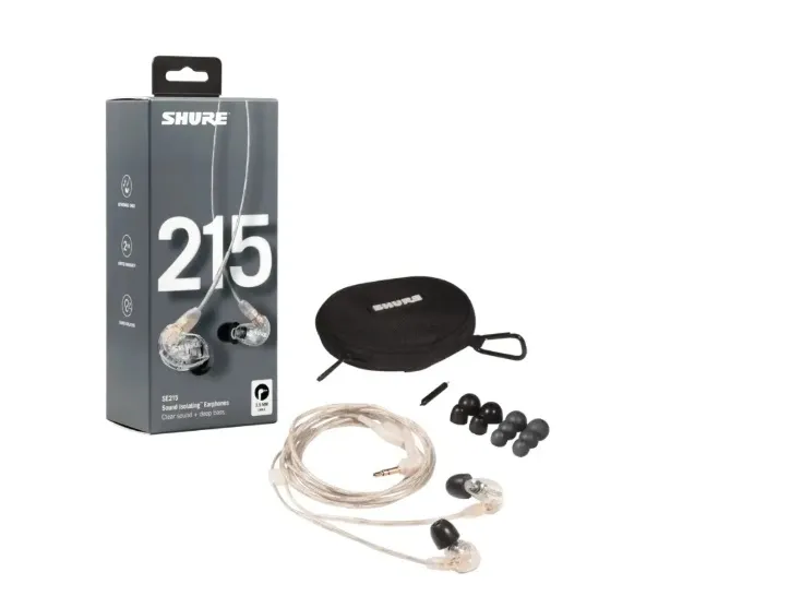 Shure SE215 Professional Sound Isolating™ Earphones provide clear sound and deep bass with a detachable cable enabling the option to go wireless. Sound Isolating design keeps earphones in and noise out, providing incredibly immersive audio no matter where you are. Includes a zippered carrying case and fit kit with selection of sleeves for custom fit.