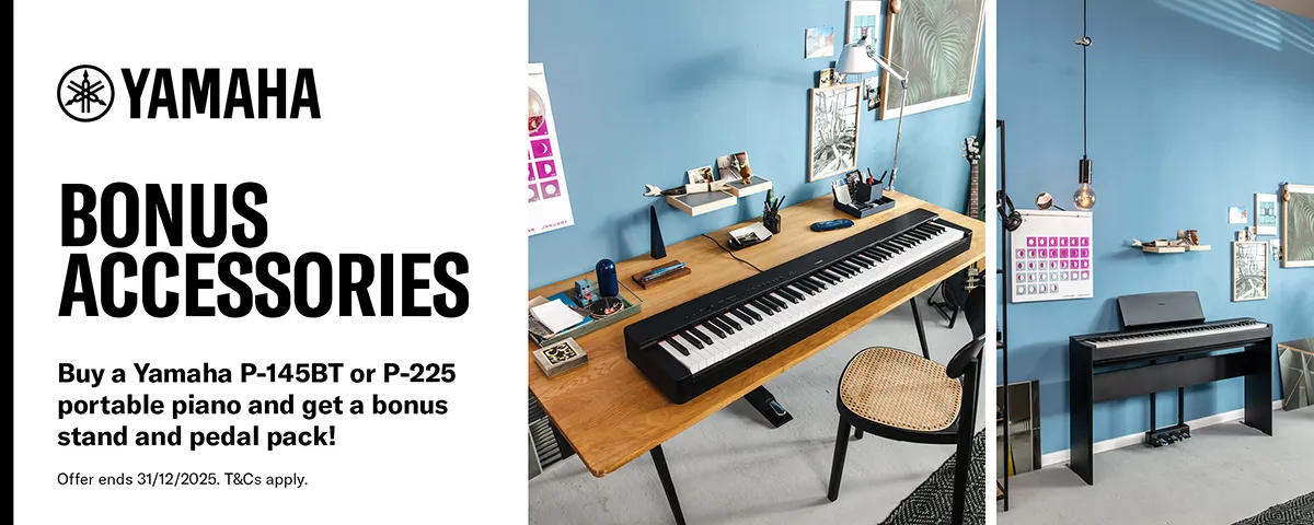 The Yamaha P-145BT brings the world-renowned Yamaha piano experience into a slim, contemporary design that fits effortlessly into any space. Combining the expressive tone of a Yamaha CFIIIS concert grand with the newly developed Graded Hammer Compact (GHC) keyboard, this portable digital piano delivers authentic playability and sound in a lightweight, stylish form.